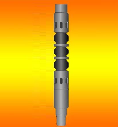 解封:上提管柱,上接头带动内中心管、连接头上行,而外中心管、锁套和卡瓦座、卡瓦等部件,由于胶筒与套管的磨擦作用保持不动,连接头上使解封套上升,解封套的内锥面内抱卡瓦,使卡瓦和锁套分离,则锁套的密封环等部件在胶筒的弹力作用下下行,从而胶筒恢复。